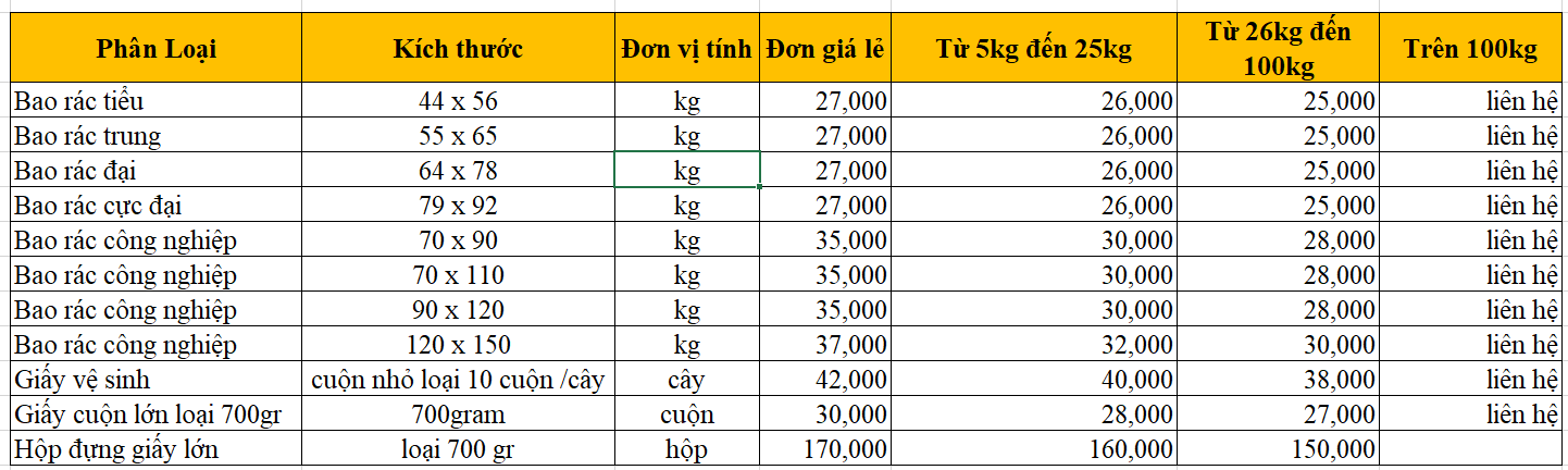 BẢNG GIÁ CUNG CẤP BAO RÁC – BAO RÁC CÔNG NGHIỆP