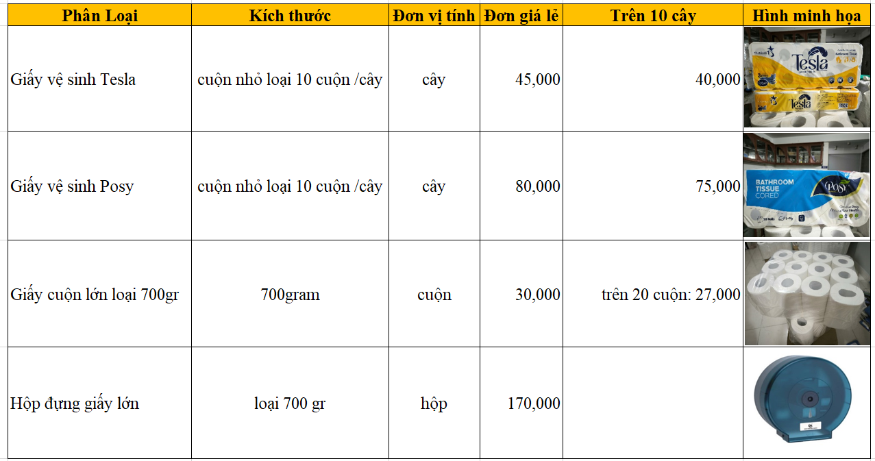 BẢNG GIÁ CUNG CẤP GIẤY VỆ SINH – GIẤY VỆ SINH CÔNG NGHIỆP
